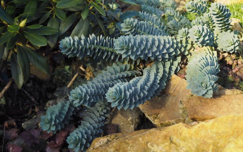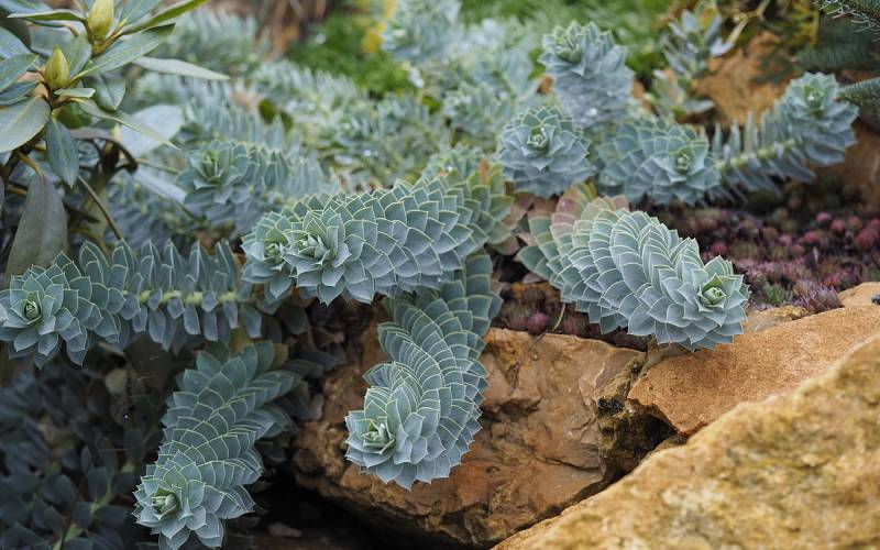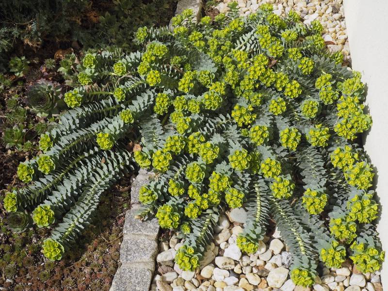 Pochodzący z ciepłych terenów południowej Europy wilczomlecz mirtowaty, polecany jest do ogrodów skalnych, gdyż
