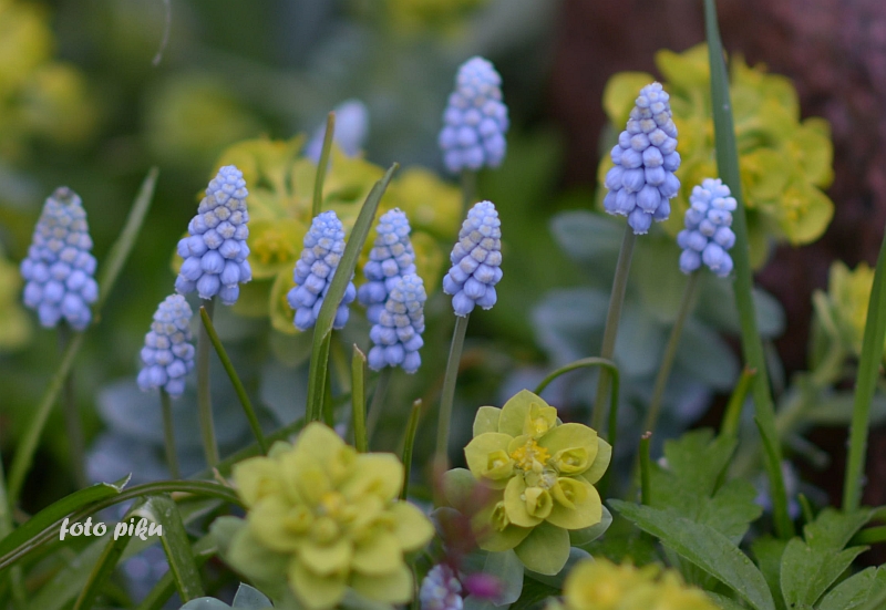 Wiosną, kwitnie bardzo wcześnie - już od IV można cieszyć się jego jaskrawożółtymi kwiatami, które bardzo chętnie odwiedzane są przez owady. Zestawienie żółci kwiatów z zimnym, niebieskim kolorem płożących ,