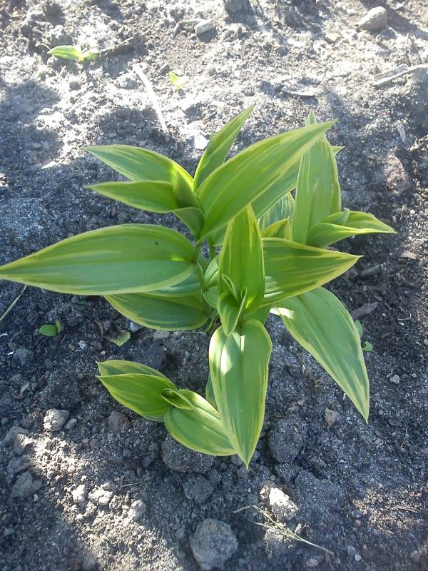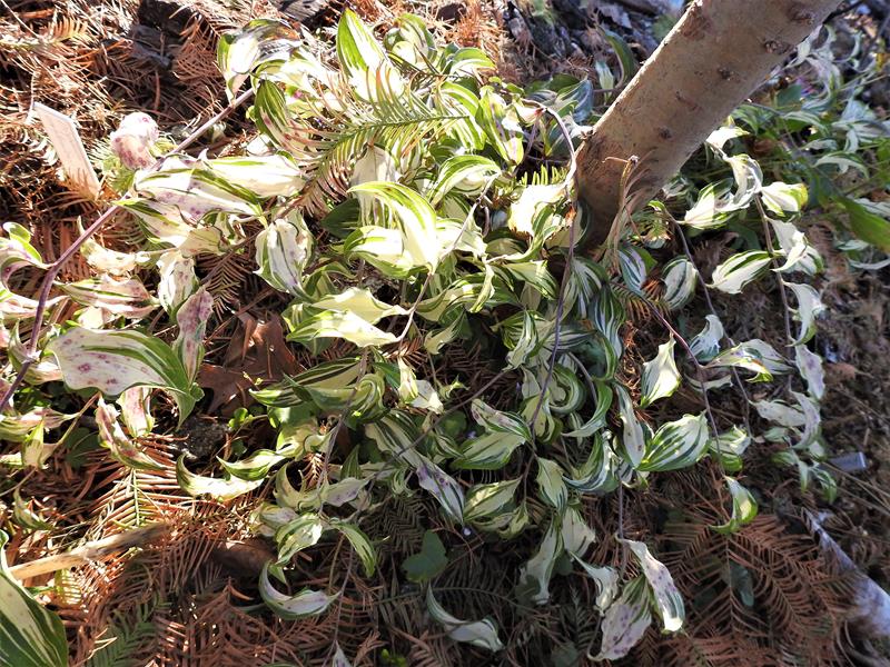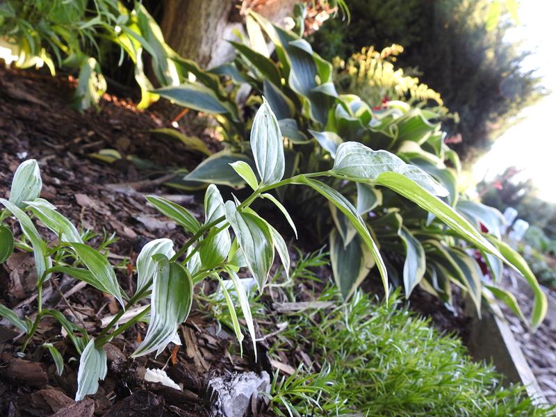 Disporum sessile "Yellow Margin" rośnie u mnie na półcienistym stanowisku, na storczykowym poletku.