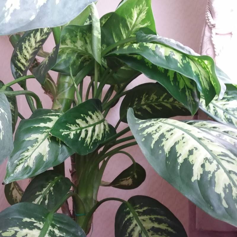 Liście difenbachii są bardzo duże z kolorowym rysunkiem, którego kształt zależy od danego gatunku. Im bardziej intensywne są ich barwy, tym lepiej – świadczy to o tym, ze roślina jest zdrowa.