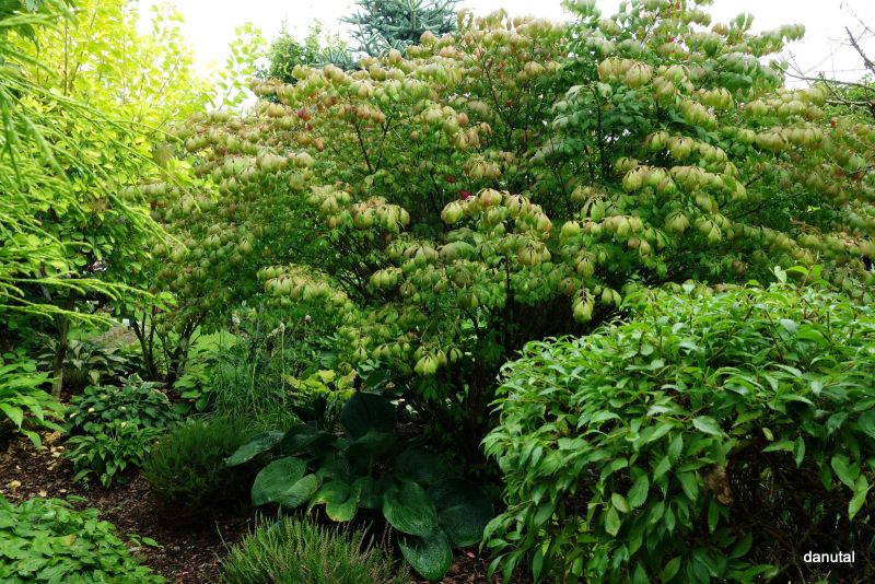 Liście wiosną jasno zielone, latem przebarwiają się w ogniście czerwony kolor.