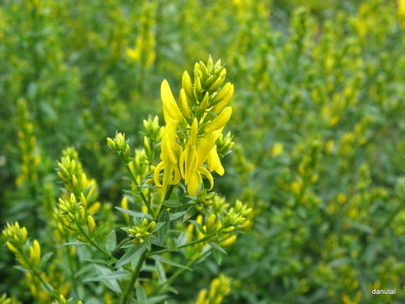 Pochodzący z Bałkanów niski (do 0,5m wys.) ścielący się krzew o niebiesko-zielonych, wiotkich pędach. Kwiaty motylkowe, złocisto-żółte, bardzo gęsto pokrywające całą roślinę końcem maja.
