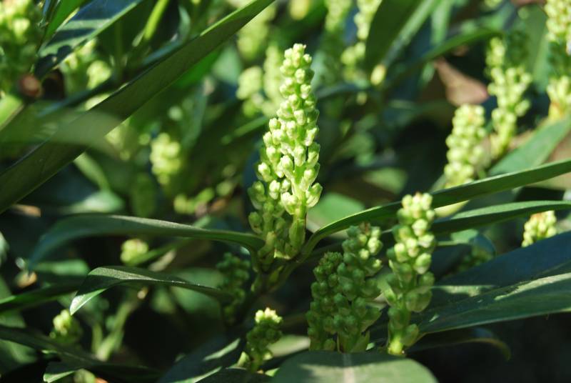 Drobne, białe, delikatne, pachnące, zebrane we wzniesione grona. Mają 5-działkowy kielich, 5-płatkową koronę, 1 słupek i liczne pręciki. Pojawiają się na roślinie w maju.