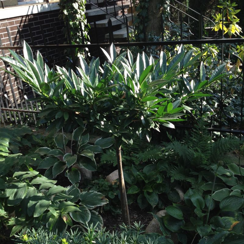 Wiecznie zielony krzew lub małe drzewo o szerokiej, rozłożystej koronie, dorastające 6 m wysokości.