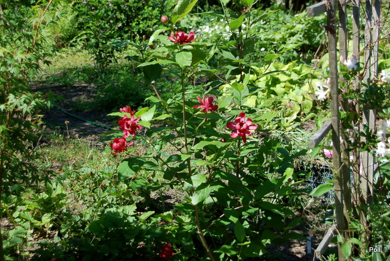 Calycanthus floridus). Ten interesujący, choć dość rzadko spotykany w ogrodach krzew ozdoby, posiada nie tylko ciekawe kwiaty i przebarwiające się jesienią na żółto liście, ale też zachwyca dość mocnym, charakterystycznym aromatem, przypominającym zapach jabłek i goździków.