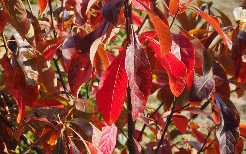 Ulistnienie: liście dosyć duże (10-20cm), lancetowate, błyszczące, jesienią pięknie przebarwiają się na pomarańczowo- czerwono-purpurowe kolory.