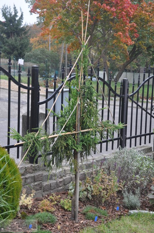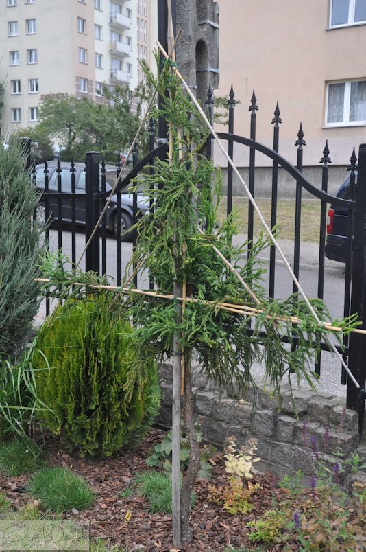 Wybacz, ale pomyliłem odmiany. Moja z takimi staśmieniami to 'Kilmacurragh'. Rośnie przy ścieżce, więc każdej zimy przywalona jest śniegiem, który uprzątam z przejścia. Pomimo takie okrycia, jak pisałem wcześniej, grzebyki lubią przemarznąć. Mam też posadzonych kilka innych szydlic, ale zimą cierpi tylko ta i o dziwo zwykła siewka, która ma już może z 5 metrów. Tuż obok niej rośnie niewiele mniejsza 'Rasen' (ta z poskręcanymi igłami) i zupełnie nic się jej nie dzieje. Reszta mniejszych jak np. Yokohama lub Dinger także zimują bez problemu.