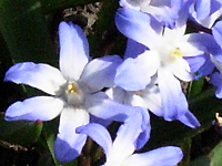 • Śnieżnik Forbesa (Chionodoxa forbesii); 4–10 kwiatków na łodyżce; w środku kwiatka nieco większe białe oczko o wyraźnych brzegach (pochodzi z zachodniej Turcji)