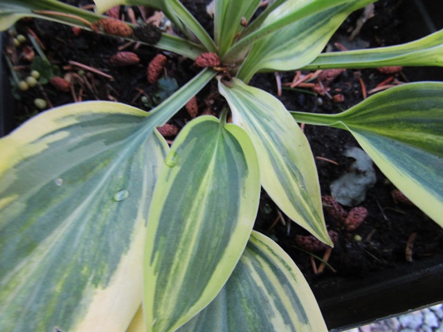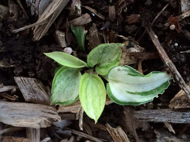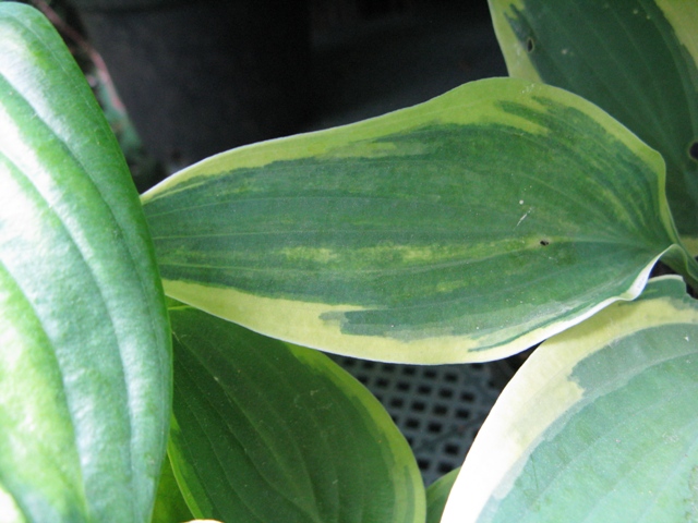 .W Zilisie znalazlam info, ze Neptune pochodzi od (Maekawa x Halcyon) x Salute. Przyjrzalam sie i wyglad nowego odrostu pasuje do Salute, z jej sklonnosci ado pionowo rosnacych lisci. Hmmm...