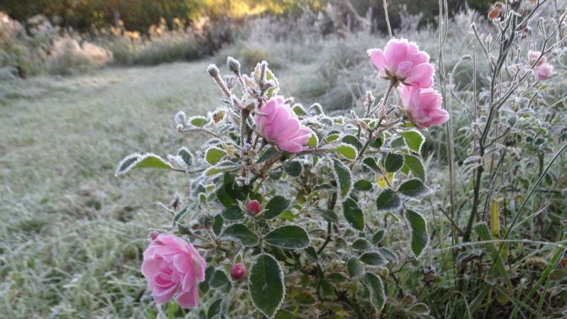 Gdy poranne słońce przebije się przez jesienną mgłę, ogród zamienia się w kryształowy pałac, gdzie rośliny mieniąc się w blasku przypominają oddech natury uwięziony w lodowych klejnotach. Oszronione gałązki, obwieszone lśniącymi kryształkami, zdają się pulsować światłem, a biel mgły oplata je jak delikatna zasłona, tworząc widowisko pełne magii i ciszy. Każdy liść staje się zwierciadłem, odbijającym promienie w tysiącu odcieni, jakby sam wiatr utkał z lodu koronę dla tej zimowej oazy.