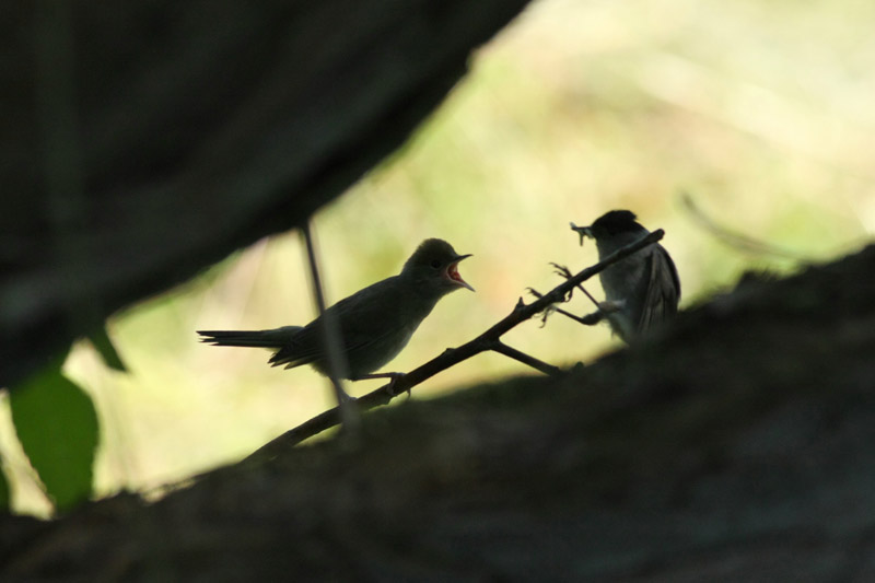 Strasznie fałszuje! Po tym poznaję, że w okolicy siedzi samiec kapturki i próbuje zwabić pannę. Od wielu lat obserwuję w ogrodzie, muszą się gdzieś w okolicy gnieździć. Ganiają po krzakach najpierw żerując, potem karmią młode przesiadujące np na mojej aronii.