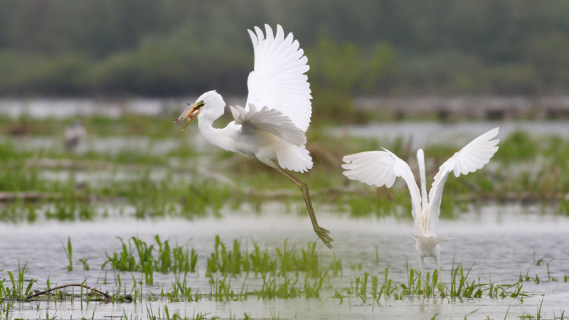 Mniej liczna w Polsce niż czapla siwa. Mniej jest tez jej lęgów na terenie Polski. Piękny dostojny ptak. Żywi się rybami, drobnymi zwierzętami, owadami. Obserwuję ja często i licznie w PN Ujście Warty, ale na innych terenach rzadka. Opisywałam przy okazji wpisu o czapli siwej, przygodę na płyciźnie nad Postomią. Czaple białe łowiły ryby, ale za duże ryby nie chciały przejść przez chude szyjki więc siwe podbierały pokarm białym. Oglądaliśmy ten spektakl przez dłuższą chwilę. Straszny hałas przy tym robiły!