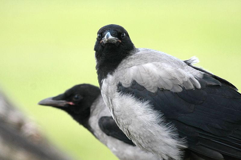 Mieszkają w pobliżu nas, choć do mojego ogrodu prawie nie zaglądają. Może dlatego, że lubią bardziej otwartą przestrzeń. Częściej niż w ogrodach przebywają w parkach, ale ze względu na dostępność pożywienia chętnie przebywają w pobliżu ludzi. Niełatwo ja sfotografować. Próbowałam niejednokrotnie, ale są bardzo mądre i czujne i odlatują zanim skieruję w nie obiektyw. Załapały się tylko gapkowate wroniątka.