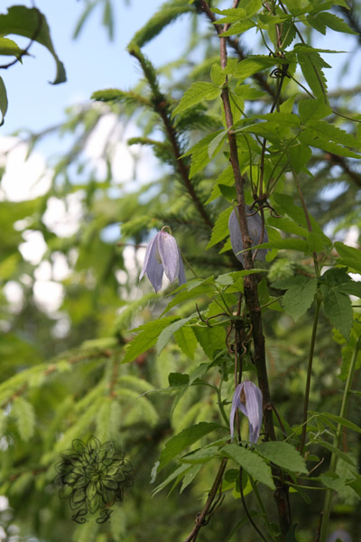 Roślina bylinowa, pnąca, drewniejąca, z chwytnymi ogonkami liściowymi. Kwiaty koloru niebieskofioletowego zwisłe na długich szypułkach.