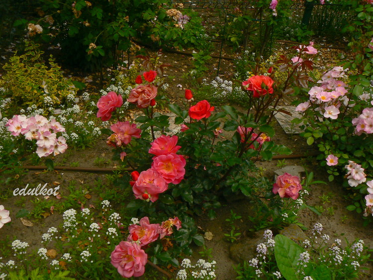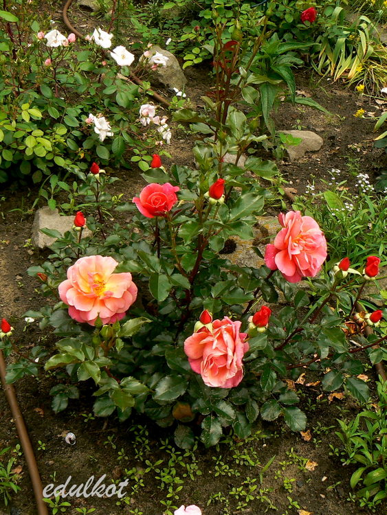 Kwiaty:intensywnie łososiowo-różowe, w miarę rozwijania robią się różowe (Ø 7- 8cm), złożone z około 15 płatków z jaśniejszą obwódką bardzo ładnie uformowanych,