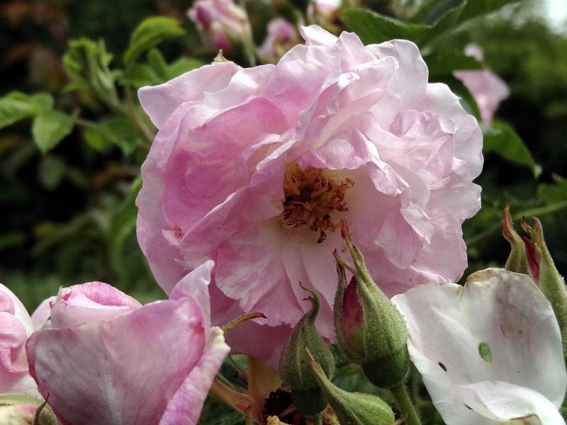 Kwiaty duże. Pachnie delikatnie. Kwitnie w ostatniej dekadzie maja i w czerwcu. Może powtarzać kwitnienie pojedynczymi kwiatami.