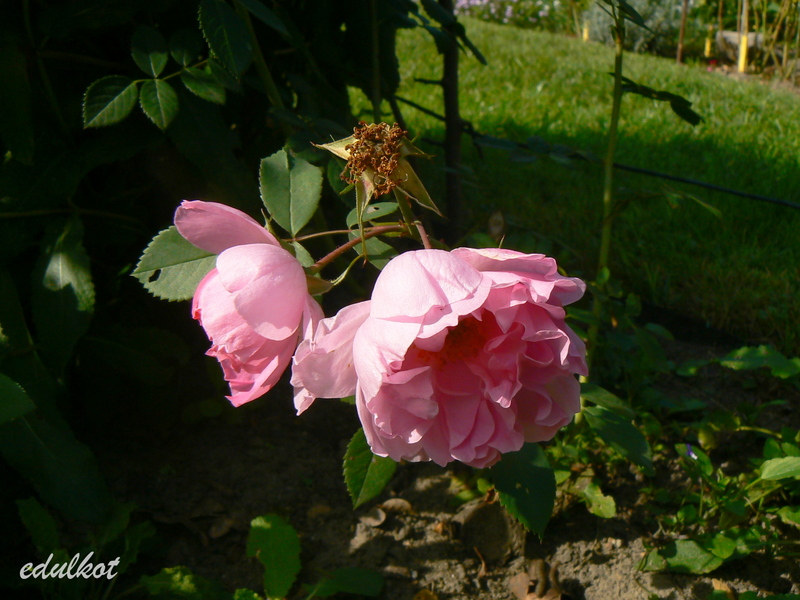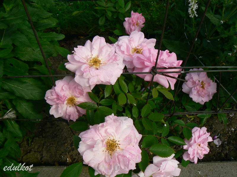 Kwiaty duże, półpełne do pełnych, różowe. Literatura wspomina o niezbyt doskonałym kształcie kwiatów, czego nie potwierdzam. Niestety, nie mogę również potwierdzić informacji o korzennym zapachu, enigmatycznie stwierdzę tylko, że róża wygląda, jakby pachniała