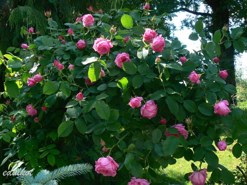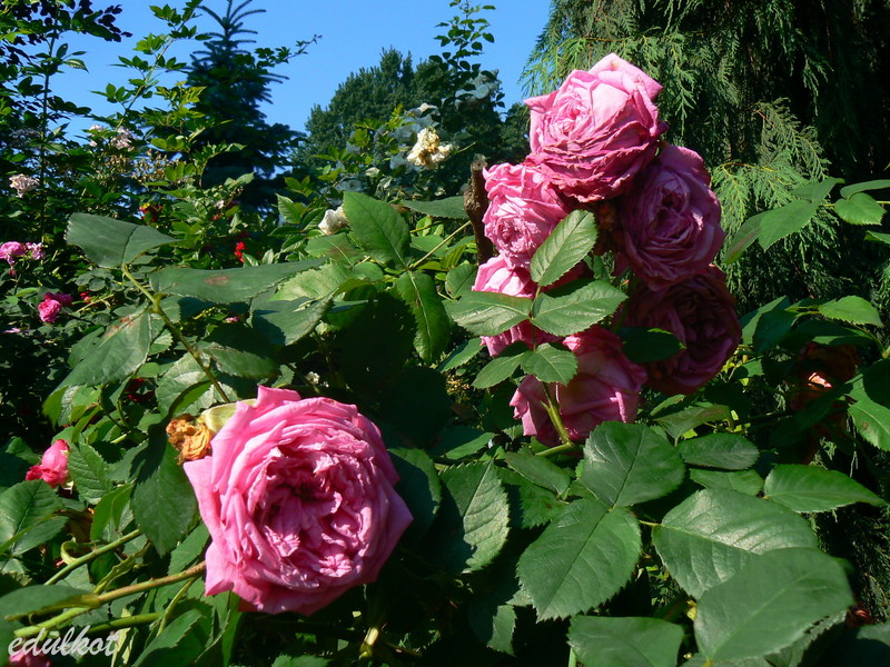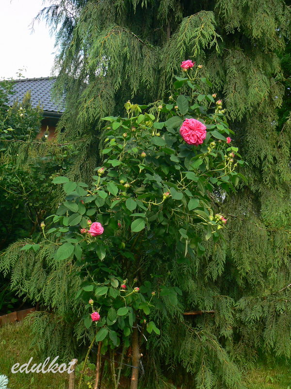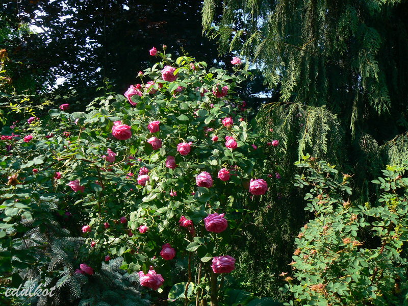 To tylko slogany, bo po czasie okazało się, że to nie jest róża stworzona przez Geschwinda i wcale nie jest chorowita, a ja ją wcisnęłam z dala od uczęszczanych ścieżek. Jedyna jej wada to brzydkie starzenie się kwiatów, które trzeba obcinać bo sama ich nie zrzuca.