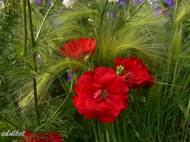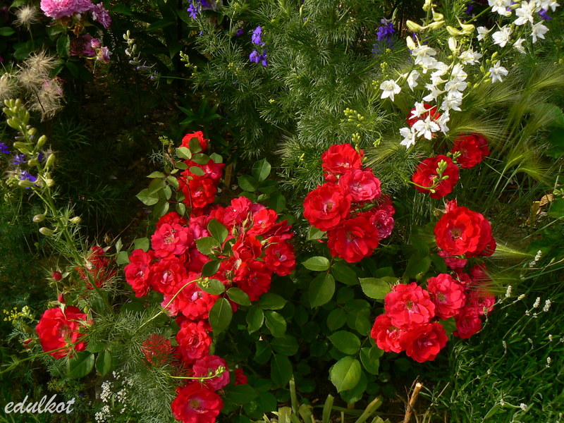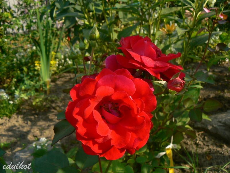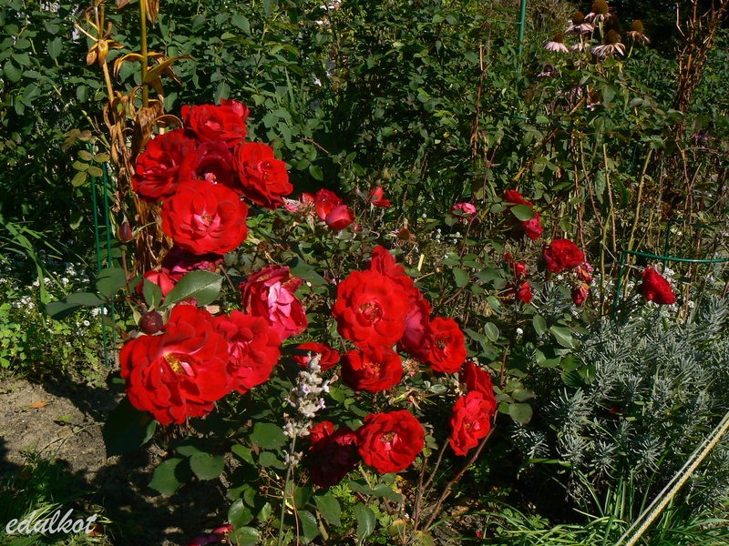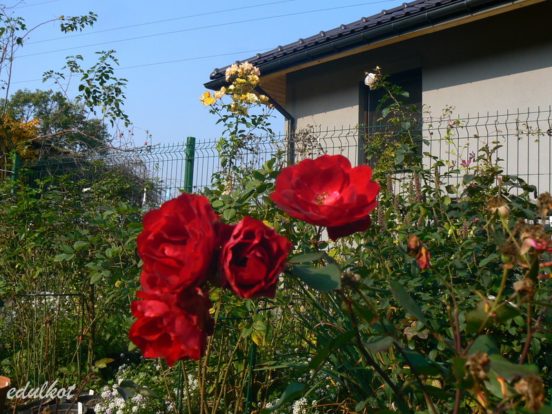 Róża malutka, a może to ja ją tak nisko tnę, bardzo chorowita, ale usiłuje nadrobić wrażenie pięknymi kwiatkami.