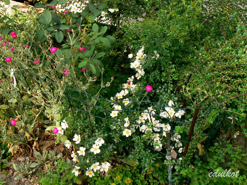 Skusiłam się na malutką, kompaktową różyczkę, kupując u Ćwików sugerowałam się jej wymiarami: wysokość 0,3 m, szerokość 0,4 m. Okazała się wielkim potworem, którego bardzo kolczaste pędy upinałam na płotku i na irdze. Teraz muszę ją wykopać i całkowicie nie mam pomysłu gdzie ją posadzić.