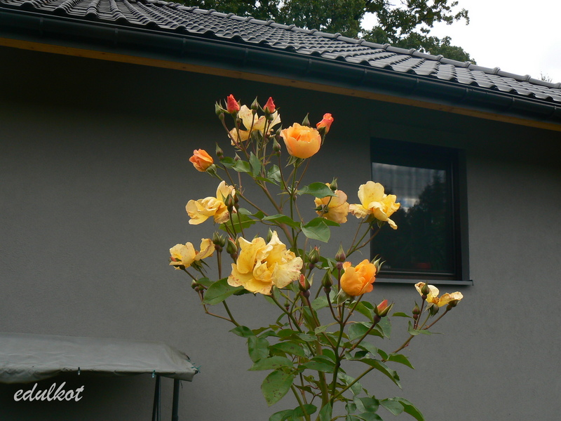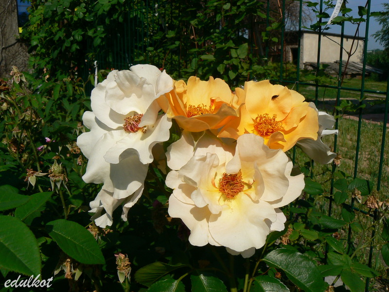Powolutku się rozkrzewia, kwiatki ma śliczne z żółtymi pręcikami przechodzącymi w czerwony kolor. Wygląda na to, że jest odporna na choroby grzybowe bo do końca sezonu miała ładne liście, choć wyczytałam, że na czarną plamistość podatna. Słaba wytrzymałość na zmienne temperatury zimą i na przedwiośniu, w 2017 cięta do ziemi, ale do końca sezonu urosła do przeszło 2 m.