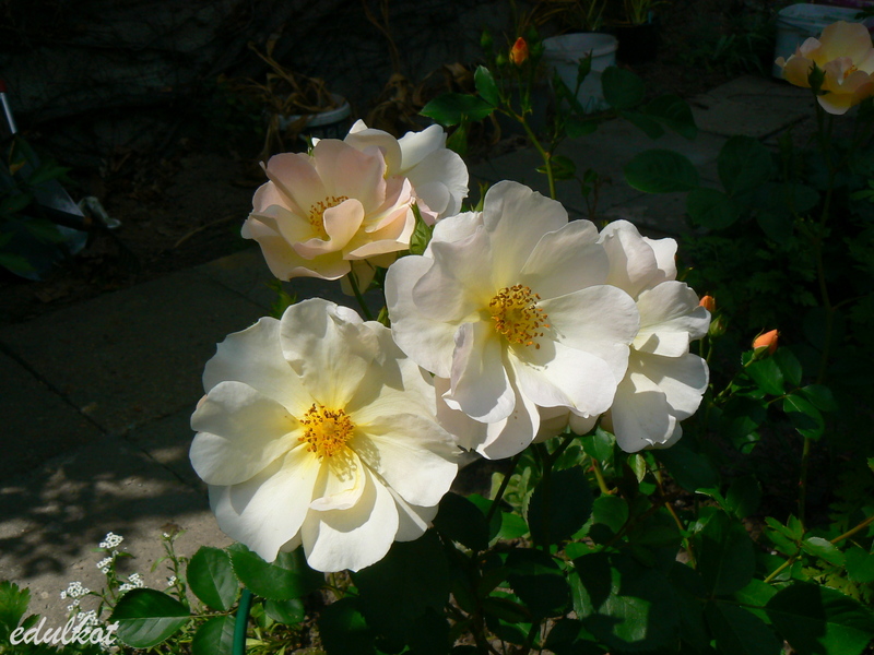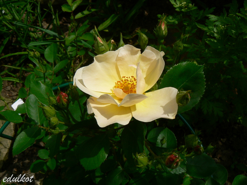 Kwiaty: średnie, pojedyncze, żółte do blado-żółtych, łososiowe zacienienia, ozdobne pręciki, kwitnie wiechami cały sezon;