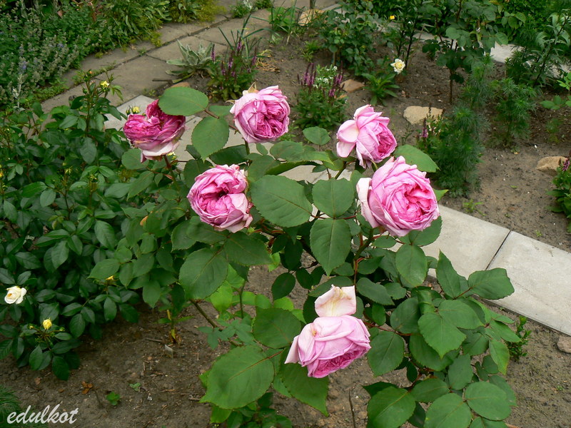 Kwiaty: duże, półpełne, miseczkowate, różowo-czerwone do szkarłatu, powtarza kwitnienie;