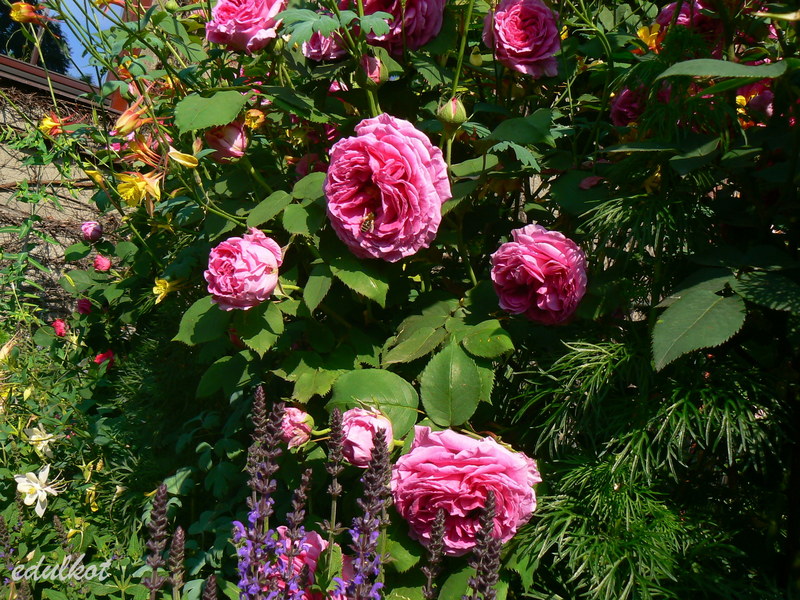 Jej bujny wzrost może przyprawić o rozstrój nerwowy, ciągle pnie się w górę a na końcówce pędów wytwarza wiązankę pąków. Zakulkowana też nie wygląda dobrze, już sama nie wiem jak ją prowadzić. Za to widok jej kwiatów i oszałamiający zapach wynagradzają te mankamenty. Z początku byłam przekonana, że jest odporna na choroby i na deszcze, okazało się wręcz przeciwnie. Mączniak prawdziwy to jest nieodłączny towarzysz w drugiej połowie lata, dlatego jeżeli dam jej zakwitnąć to kwitnie na gołych patykach. Podczas długotrwałych deszczy kwiaty gniją na pniu bez możliwości rozkwitu, tak bywa w każdym sezonie.