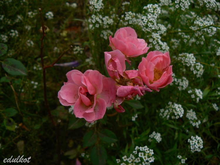 Kwiaty: małe 3-4 cm, półpełne (9-16 płatków), różowe, kwitnie cały sezon, kwiaty same odpadają po przekwitnięciu;