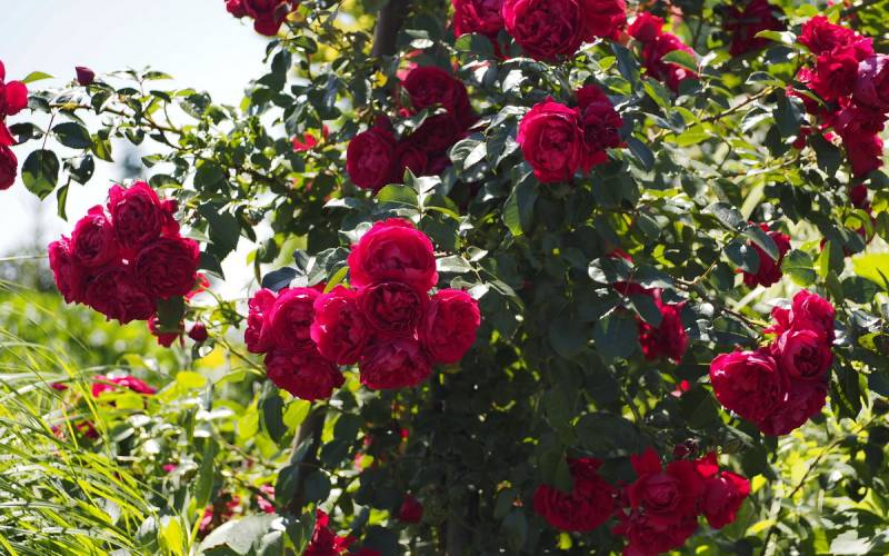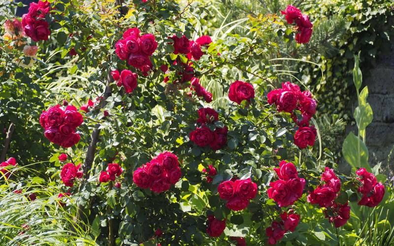 Florentina to wspaniała, obficie kwitnąca na czerwono róża pnąca, o urzekających pełnych kwiatach, jedna z najlepszych czerwonych;