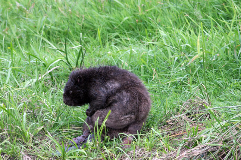 Wielu z nas widziało bobrze żeremia, ale żeby zobaczyć samego bobra, to już trzeba mieć szczęście. My mieliśmy, bo nie dość, że krążyły wieczorem w rzeczce 2 sztuki, to jeszcze jeden z nich wyszedł na brzeg, pasł się i szudrał. Myślałam na początku, ze coś go swędziało, ale doczytałam, że one czyszczą dokładnie futro po czym rozprowadzają po ciele wydzielinę z gruczołów przyodbytowych żeby nabrać wodoodporności.