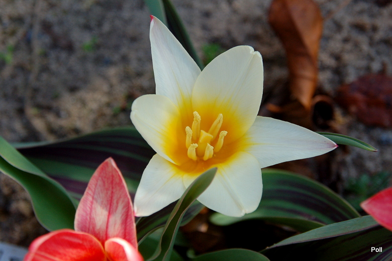 Wysokość: 30-35 cm Kwiat: biało-czerwonawe, duże żółte dno kielicha Kwitnienie: kwiecień Wymagania: przeciętna ziemia ogrodowa z tendencją do lekko zasadowej, przepuszczalna Zapach: brak Mrozoodporność: bardzo dobra na terenie całego kraju (4 strefa USDA)