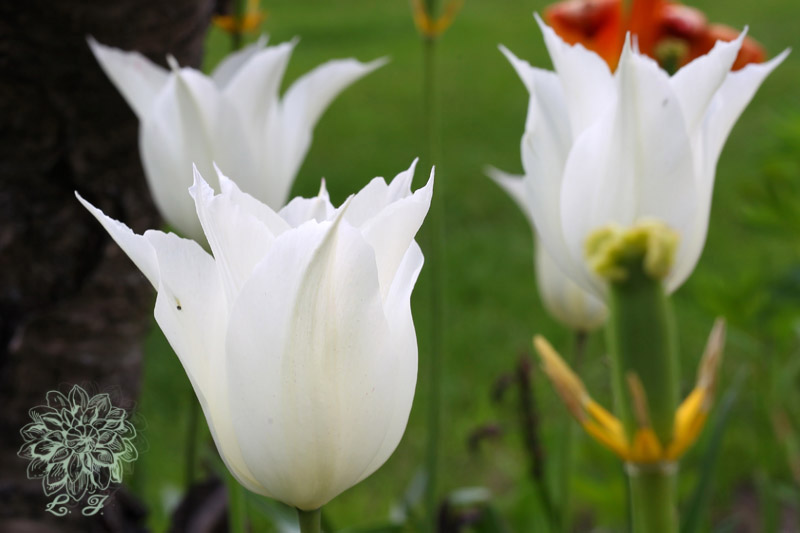 Drugi etap kwitnienia to zmiana barwy tulipana na śnieżno biały. Na początku myślałam, że to tulipan Saporro, bo on także miewa takie skłonności, ale znalazłam opakowanie...