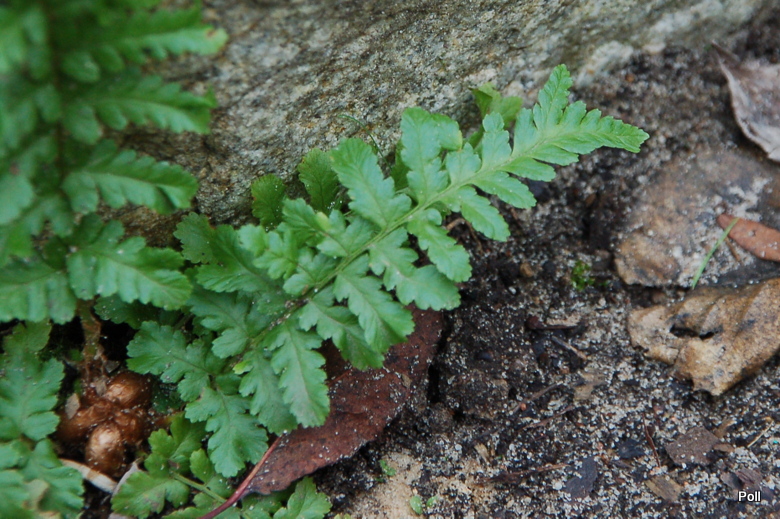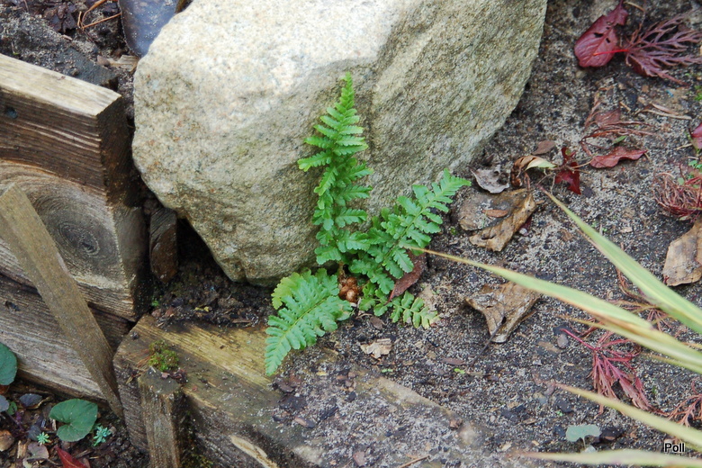 Okazało się, że okrywając na zimę paprocie stroiszem iglastym, przycisnęłam gałęziami liść z rozmnóżką a ona skorzystała z okazji i się ukorzeniła.