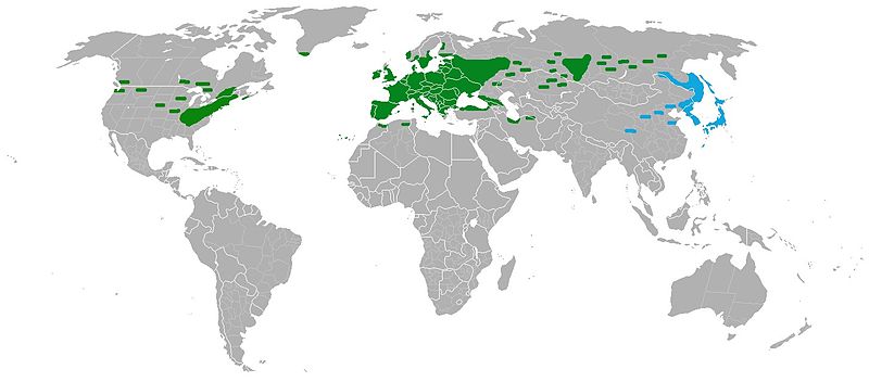 mapa obrazująca zasięg występowania Chelidonium majus