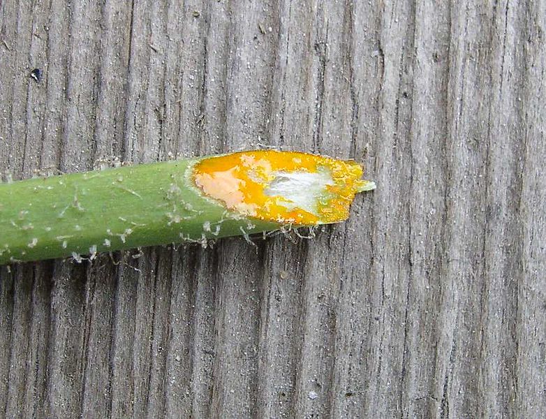 przecięta łodyga z charakterystycznym zółtym sokiem