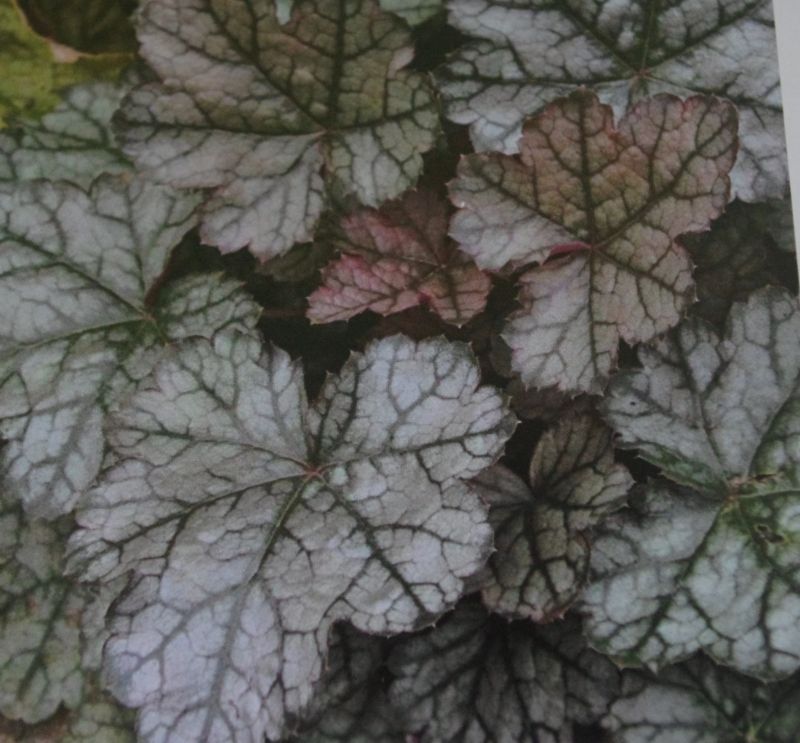 Rodzaj: Żurawka (Heuchera) Odmiana: Silver Indiana Wymiary: tworzy kępy o średnicy 30 cm i wysokości 15 cm/75 cm z kwiatostanem. Kolorystyka: liście w odcieniach zieleni, srebra i fioletu z kontrastowym żyłkowaniem. Kwiaty: białe. Kwitnienie: od maja do września. Warunki: stanowisko pół-cieniste/słoneczne.