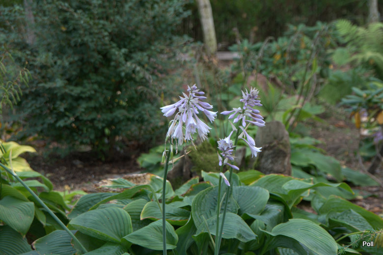 Wyobraźcie sobie w swoim ogrodzie rozłożystą roślinę , która rozsiadając się, jako soliter na cienistym trawniku, zajmuje miejsce o ok. 2,5 metrowej szerokości a jej liście osiagają 70 cm długości. Takiej hosty jeszcze nie było na rynku , więc introdukcja Skaggsów zrobiła prawdziwą furorę , choć nie jest papugowato kolorowa: jej liście mają ciemnozieloną barwę i są lekko błyszczące a od spodu sinawe . Także kwiaty nie są urodziwe - rozwijają się na przełomie VI/VII i są jasnolawendowe osadzone na długich łodygach . Ja wycinałam je , gdy roślina była młoda, aby nie traciła energii na zawiązywanie nasion. Teraz zostawiam nasienniki, licząc , że wśród przypadkowych siewek pojawi się jakaś ciekawa, które chwyci mnie za serce . Wielkim plusem Empress Wu, jest jej duża dynamika wzrostu , o czym pisałam w pierwszym poście/wstępniaku. W tworzeniu nowych kłów (zagęszczaniu) jest nieco wolniejsza - corocznie , przybywa średnio jeden kieł . Duże liście powodują jednak,że od niemal początku, tworzona kępa wydaje się wiele większa i bardziej gęsta, niż faktycznie ma to miejsce.