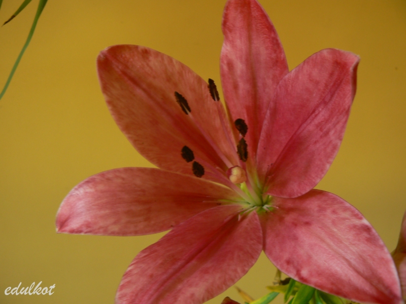 Chyba 2 tygodnie temu złamałam najwyższy i najbogatszy pęd, pączki miał jeszcze malutkie i zielone, ale było mi jej żal więc wstawiłam do wody. Zrzuciła albo jej oberwałam większość pączków, ale 3 dorosły i rozkwitły wielkością taka samą jak w gruncie. Bardzo żywotna lilia.