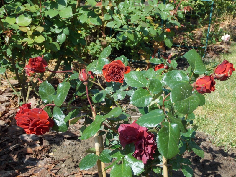 Czerwono-brązowe kwiaty średniej wielkości. Pachnie delikatnie. Kwitnie cały sezon.
