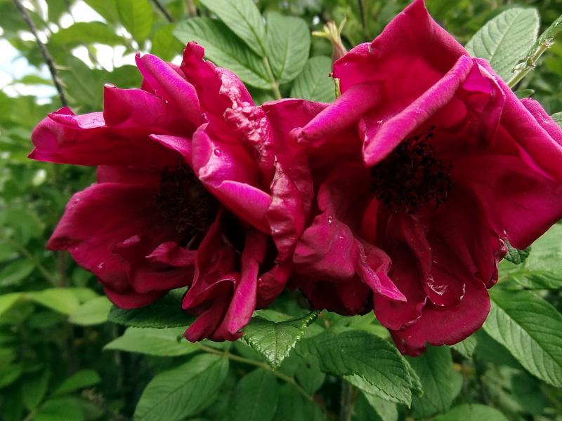 Kwiaty o pięknym, ciemnym kolorze. Kwitnie bukietami kwiatów w czerwcu i powtarza kwitnienie.
