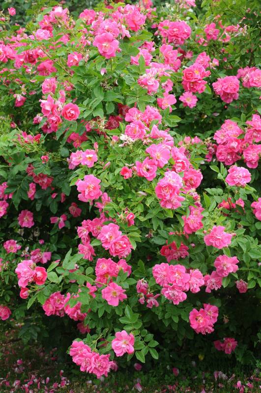 Kwiat średniej wielkości, półpełny w kolorze mocnego różu. Niewrażliwa na kaprysy pogody. Powtarza kwitnienie
