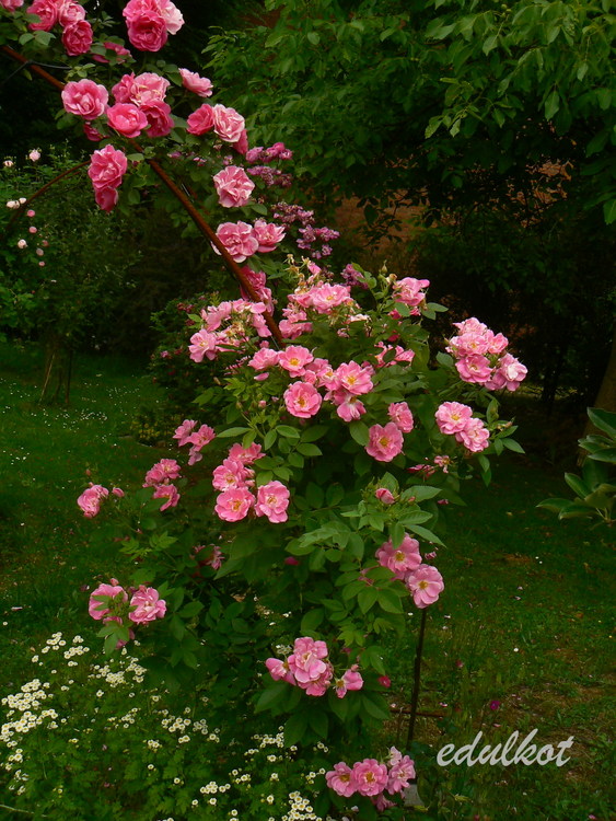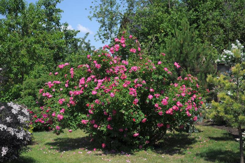 Żadnych podpór i nawet jej nie tnę, żeby utrzymać pokrój. Troszkę zwiesza w czerwcu girlandy kwiatów, ale spokojnie objeżdżam kosiarką