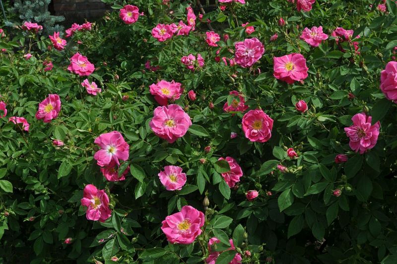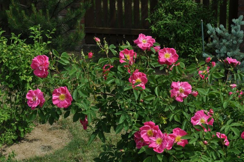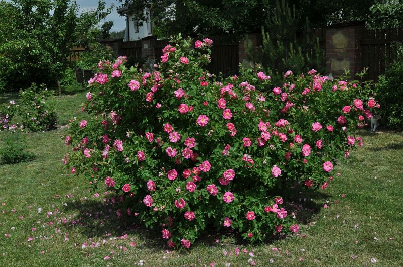U mnie trzy krzewy posadzone razem. Zaczyna kwitnąć razem z historycznymi, na początku czerwca.