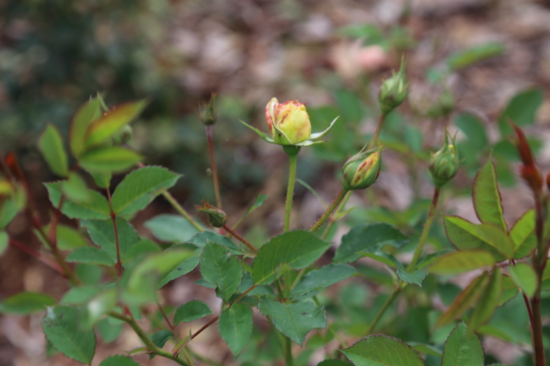 Róża The Pilgrim w tym roku, podobnie jak kilka innych, nie rozwinęła niektórych pąków. Część kwiatów, szczególnie tych później rozkwitających, była mniejsza niż zazwyczaj - przyczyniły się do tego upały i susza krecigl .
