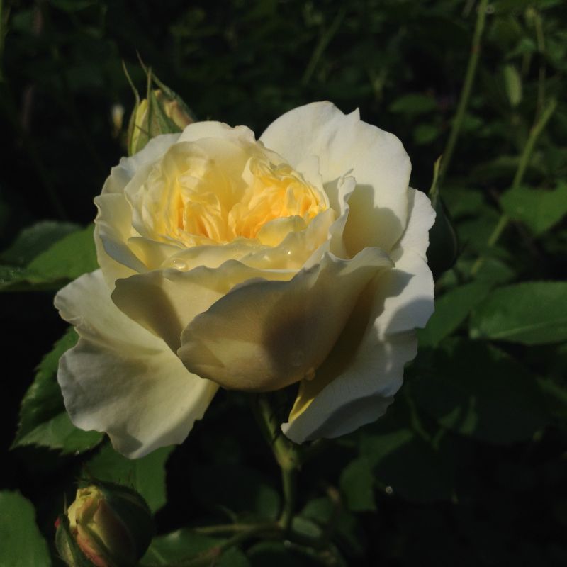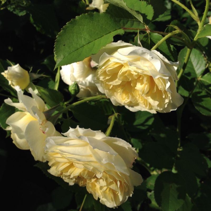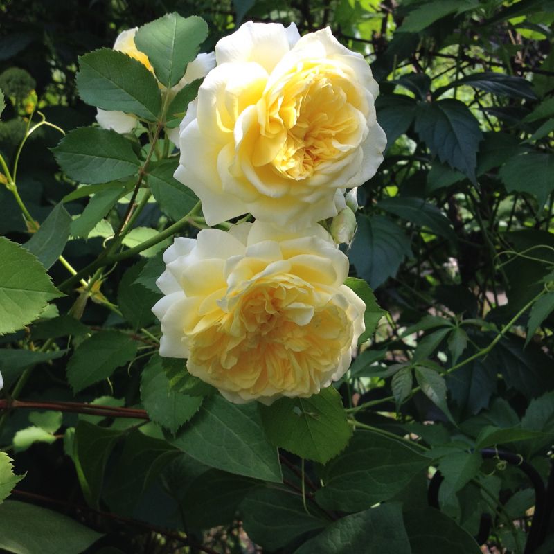 Kwiaty dość duże, dość płytkie w kształcie rozety w niezbyt mocnym kolorze żółtym, w środku ciemniejsze, bielejące do zewnątrz. Zapach silny. Róża zdrowa i niezawodna, tworzy dość wysoki krzew, może być prowadzona jako pnąca.