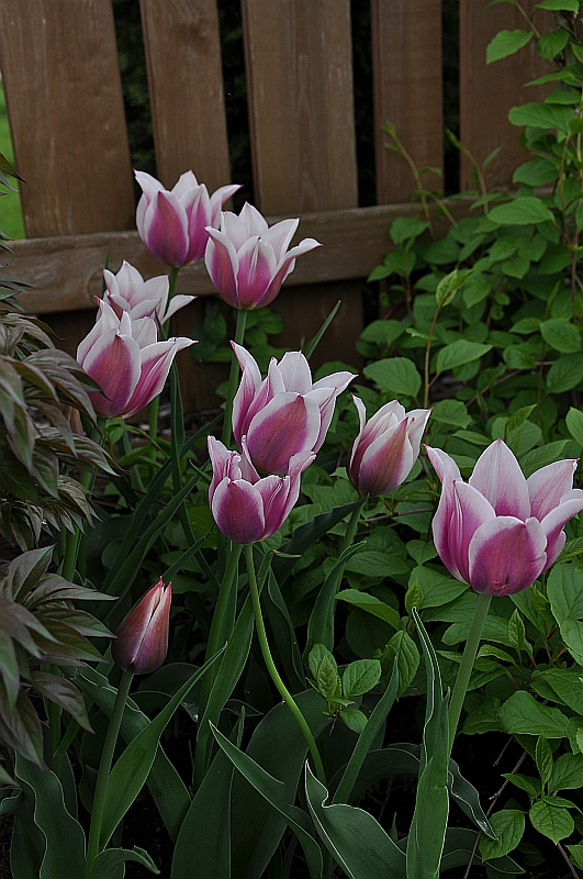 Kolor kwiatów: płatki ciemno wrzosowe z białymi marginesami